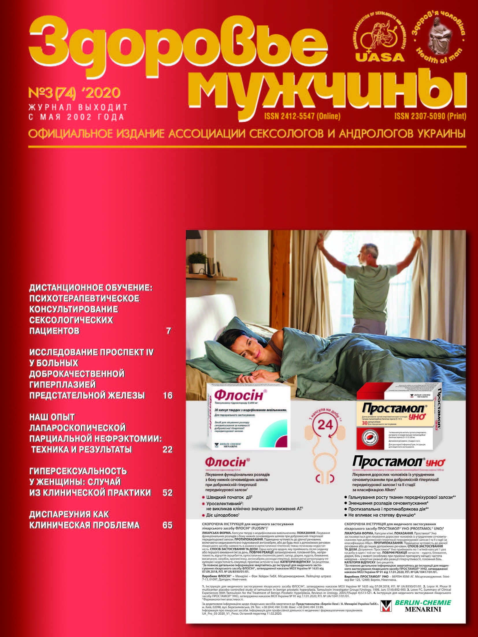 Materials and methods. Three variants of its formation were separated (premanifest, manifest, postmanifest: acute-subacute and chronic). This was determined by period of their occurrence in relation to manifestation of sexual disorders. Also twenty groups of psychological traumatic factors, which took part in the development of the syndrome were identified: normal physiological discharge, pains and pathological changes in the genitals, violation of spontaneous sexual indices, violation of adequate sexual manifestations in erotic contacts, copulatory (physiological and pathological) disorders, homosexual episode, reproaches and behaviour of the female partner, unfaithfulness of the wife, fear of dissatisfaction for the wife, fear of appearing disabled before the eyes of an experienced female partner, divulgence of information about sexual disability, onanophobia, fear of consequences of sexual abstinence, iatrogenia, reading of medical literature and acquaintance with medical documents, information about pathogenic influence of microwave frequencies, information about negative effects of anabolic hormones, apprehension of a possible deterioration of sexual functions in prospect, activation of recollections of previous sexual failures, confidence in one’s own unattractiveness.
